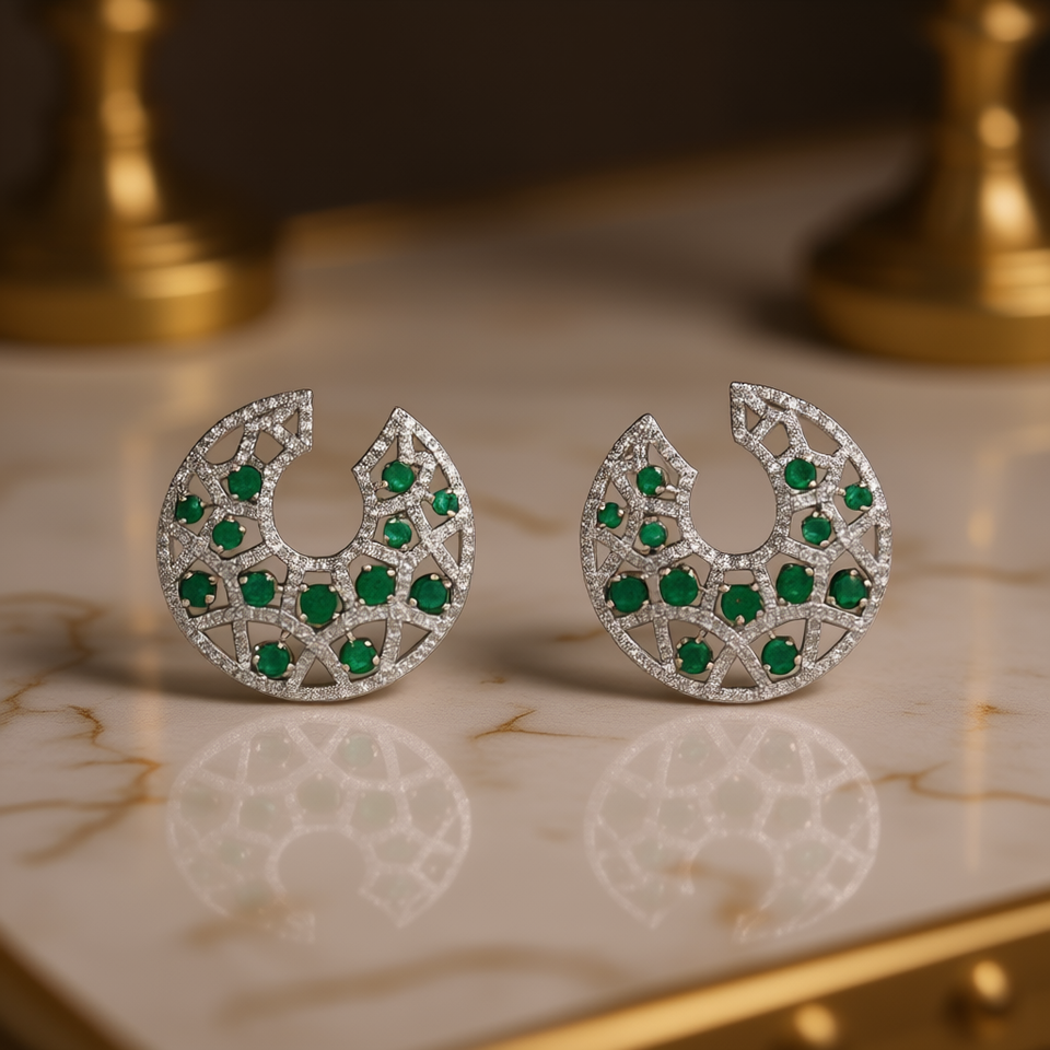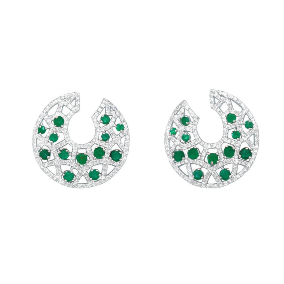 Luxury White Gold Emerald Stud Earrings Geometric Design Claw Setting Women's Party Jewelry Fine Earrings