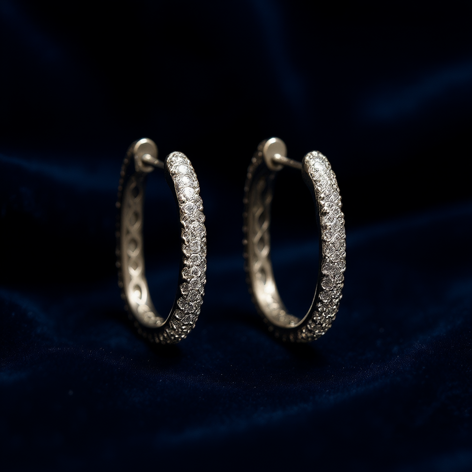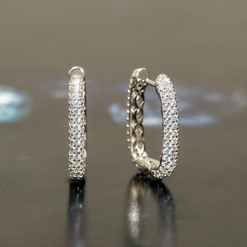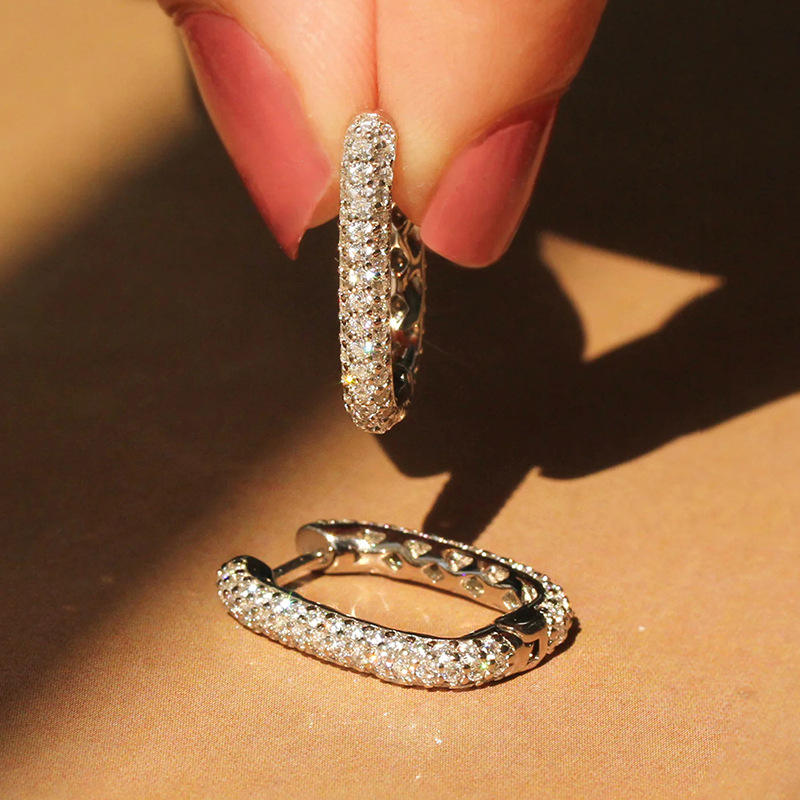 Luxury White Gold Hoop Earrings with Round Brilliant Cut Diamonds Micro Insert for Women Everyday Wear Model E3568