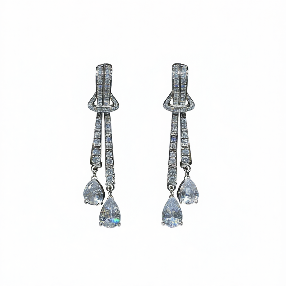 Luxury White Gold Plated 925 Silver Crystal Drop Earrings Women's Party Jewelry Water Drop Shape Channel Setting Rhinestone