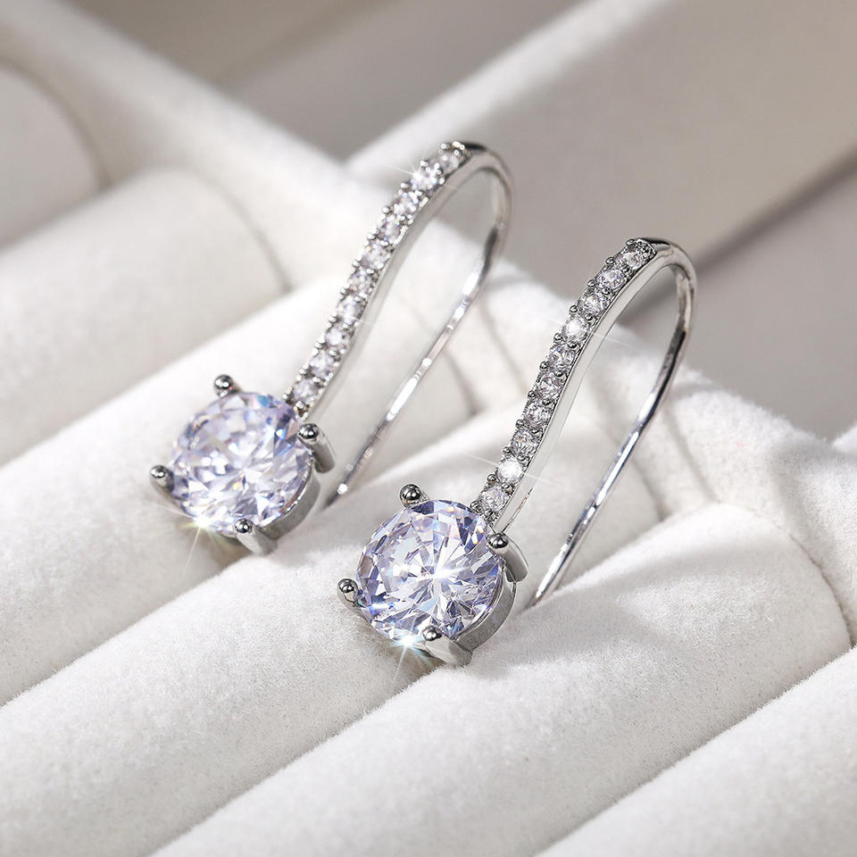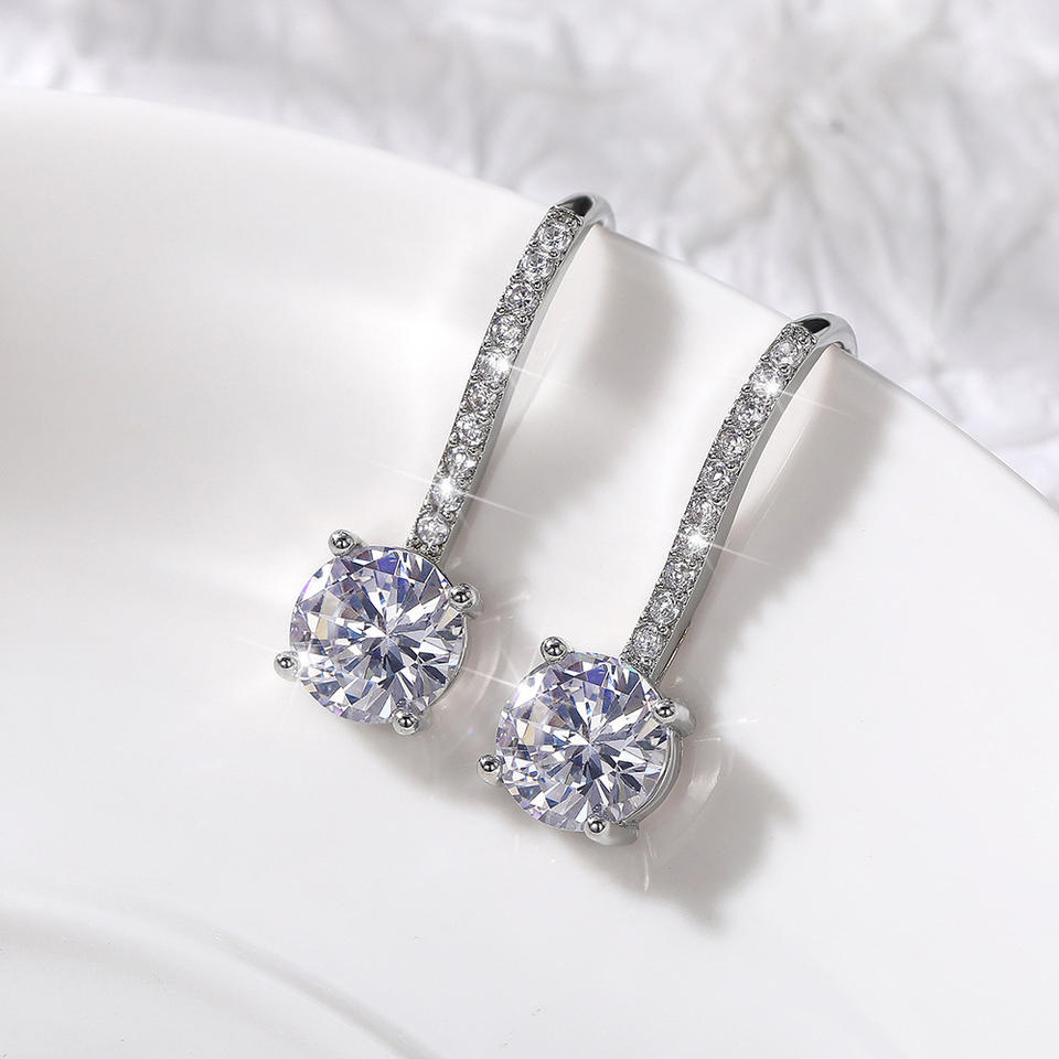 Luxury White Gold Plated 925 Silver Crystal Drop Earrings For Women Wedding Jewelry Rhinestone Claw Setting Earrings
