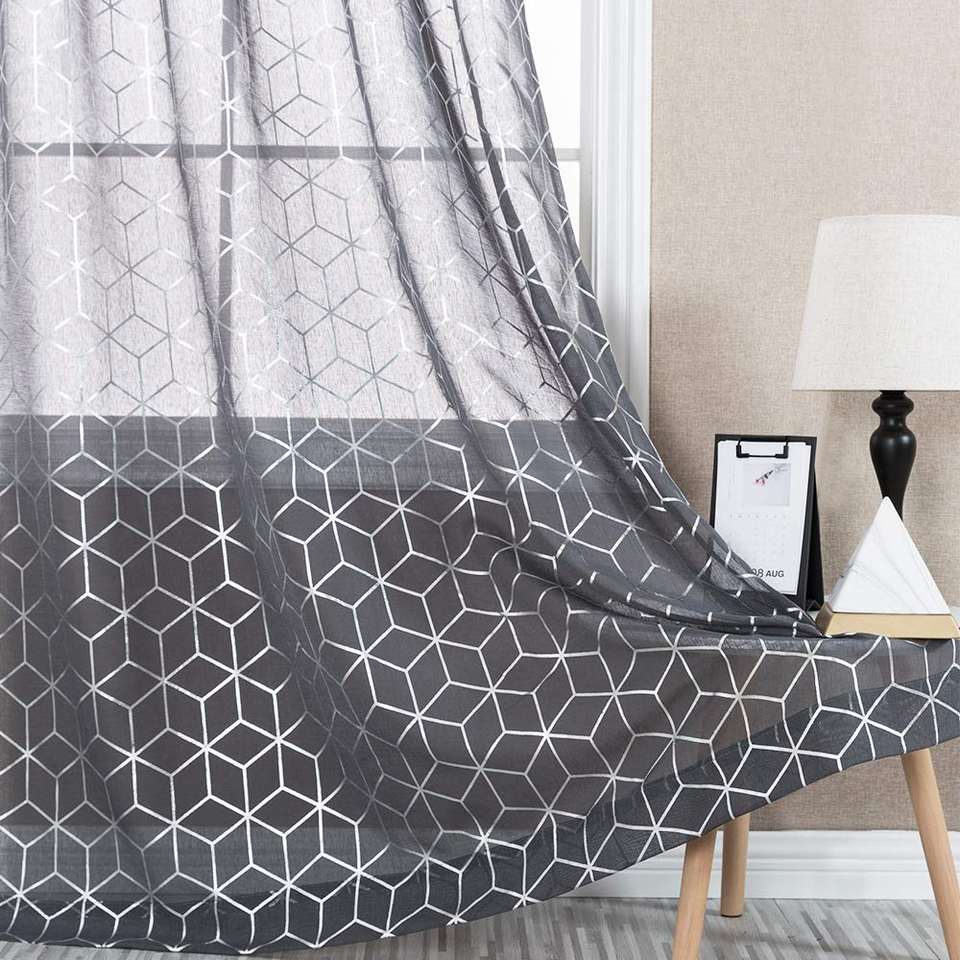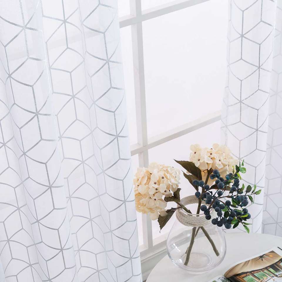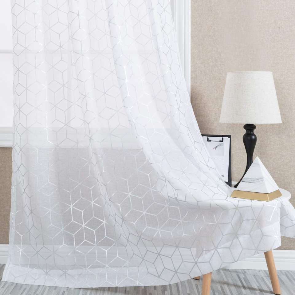 Luxury White Sheer Foil Print Voile Curtains for Living Room Rod Pocket 2 Panels