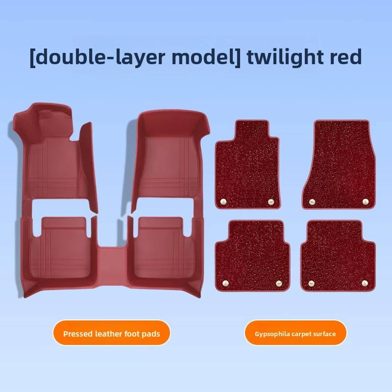 Tappetino in Vera Pelle di Lusso Rosso Vino per Audi A6L, Modelli 2017-2026 - Tappetino Auto di Alta Gamma Monoblocco Completo