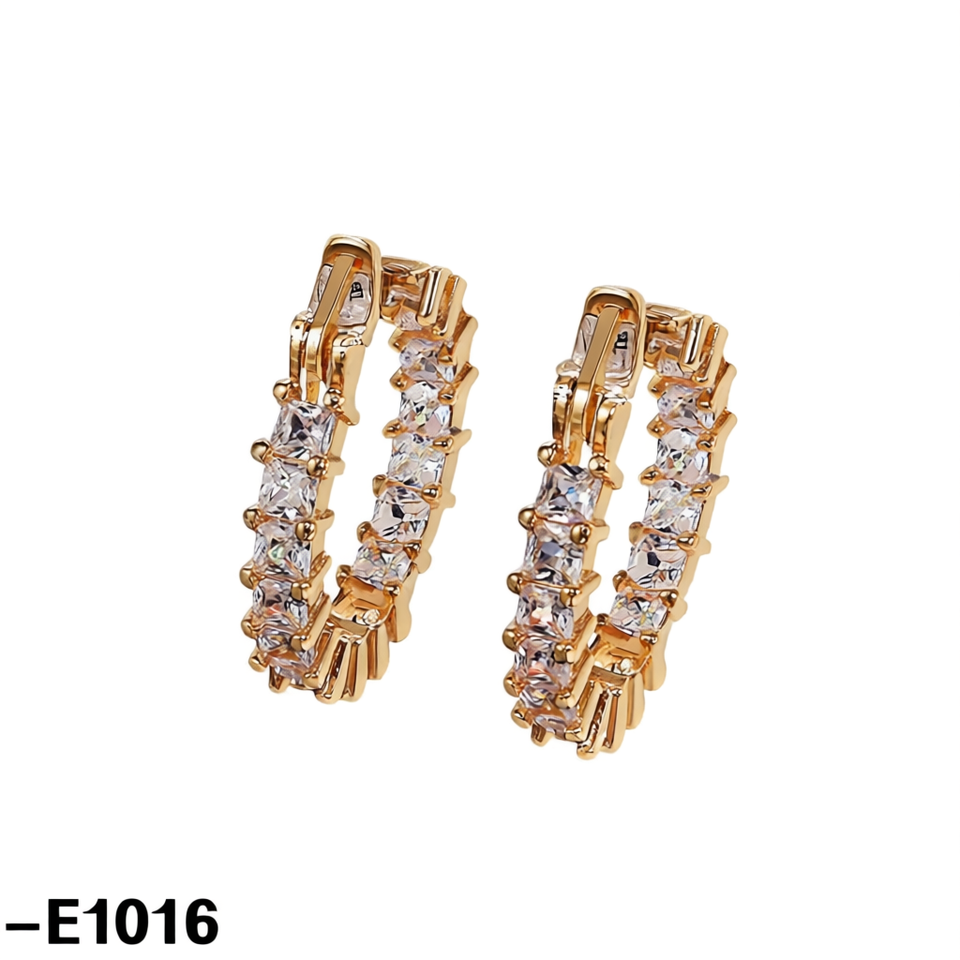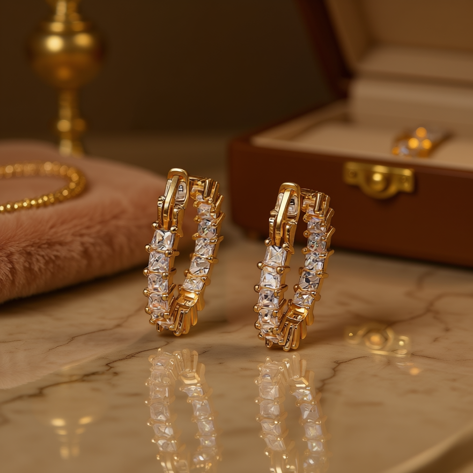 Luxury Women's 18K Gold Filled Hoop Earrings With Crystal Rhinestone Channel Setting For Everyday Wear E1016