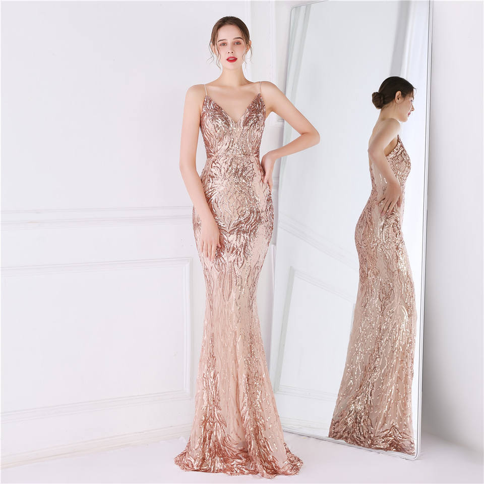 Luxury Women's Evening Prom Dresses Elegant V-Neck Mermaid Sequin Gowns for Wedding Party Dress