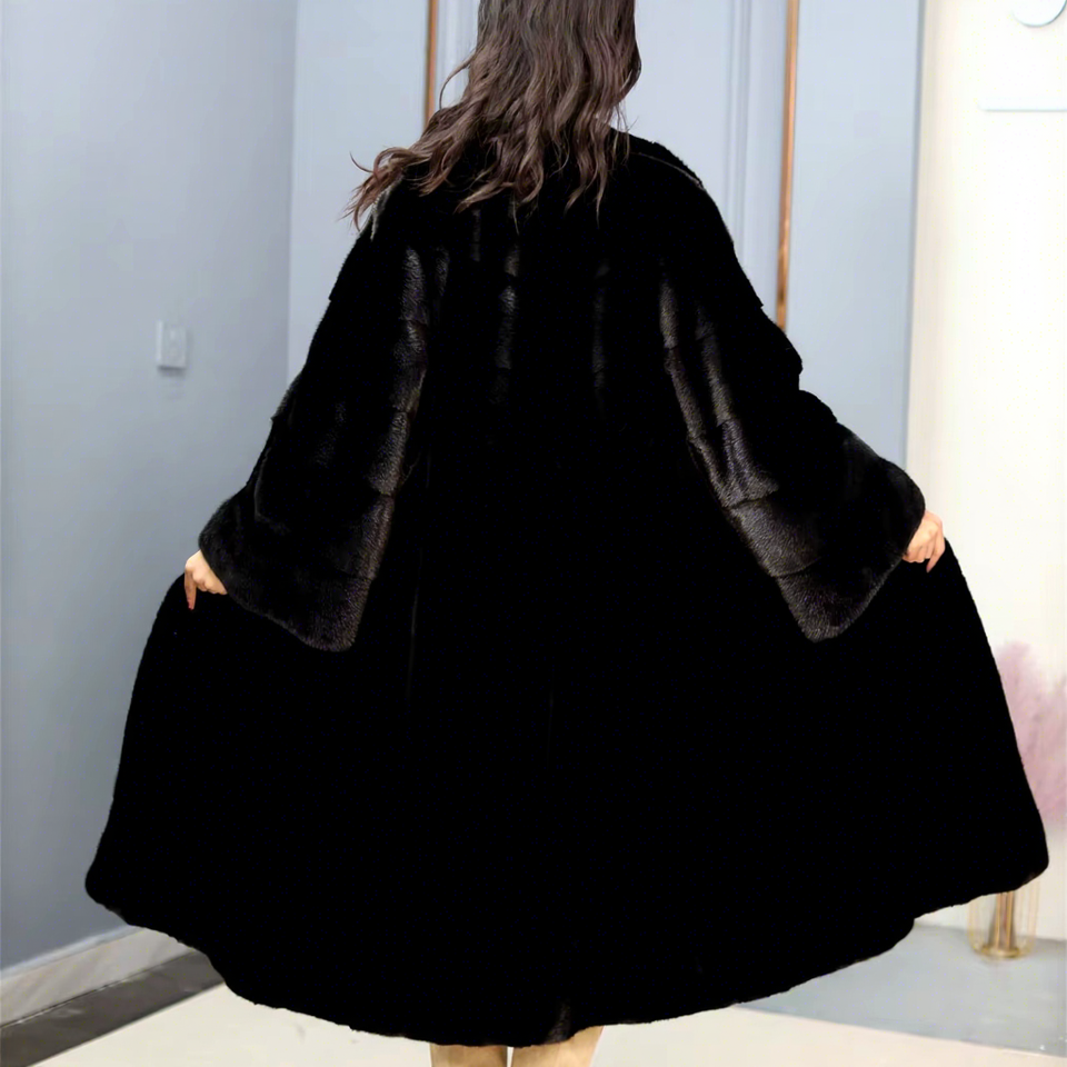 Luxury Women's Full Length Natural Black Saga Mink Fur Coat Customize Size Black Mink Coat Long Sleeves