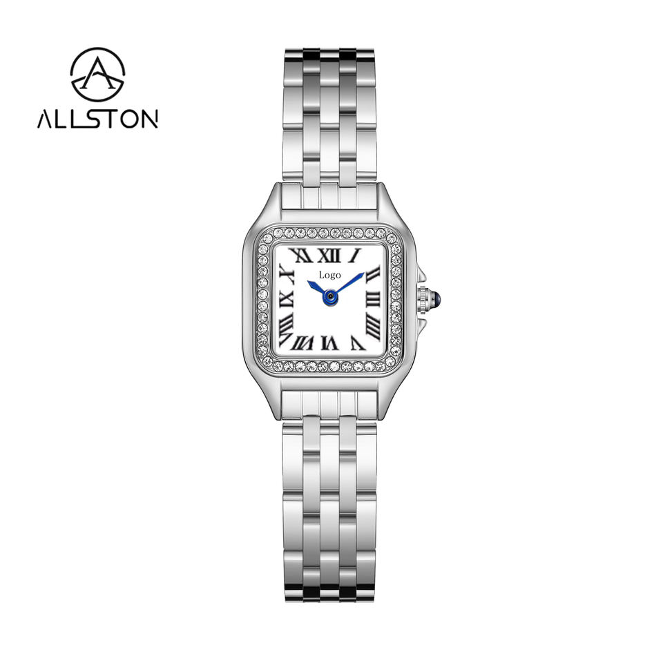 Luxury Women's Quartz Watches New Trendy Elegant Gold Stainless Steel Strap Diamond Square Dial Roman Scale Fashion Beauty