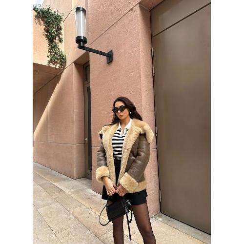 Cappotto in Pelliccia di Camello per Donne con Zip – Abbigliamento in Vera Pelle di Pecora Fatti a Mano, Produttore OEM/All'ingr