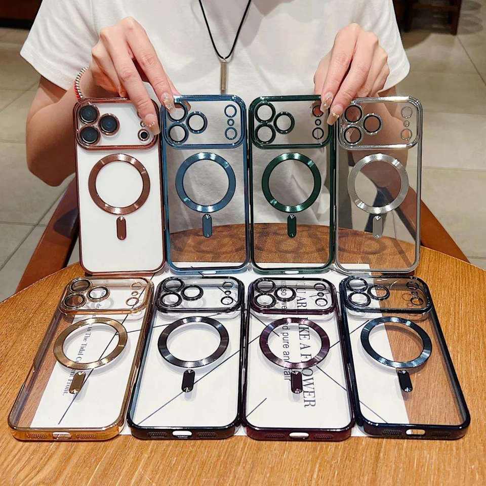 Custodia magnetica TPU trasparente di lusso iPhone 17 Pro Max wireless, antigraffio/antiimpronta/antipolvere/lavabile, 8 col.