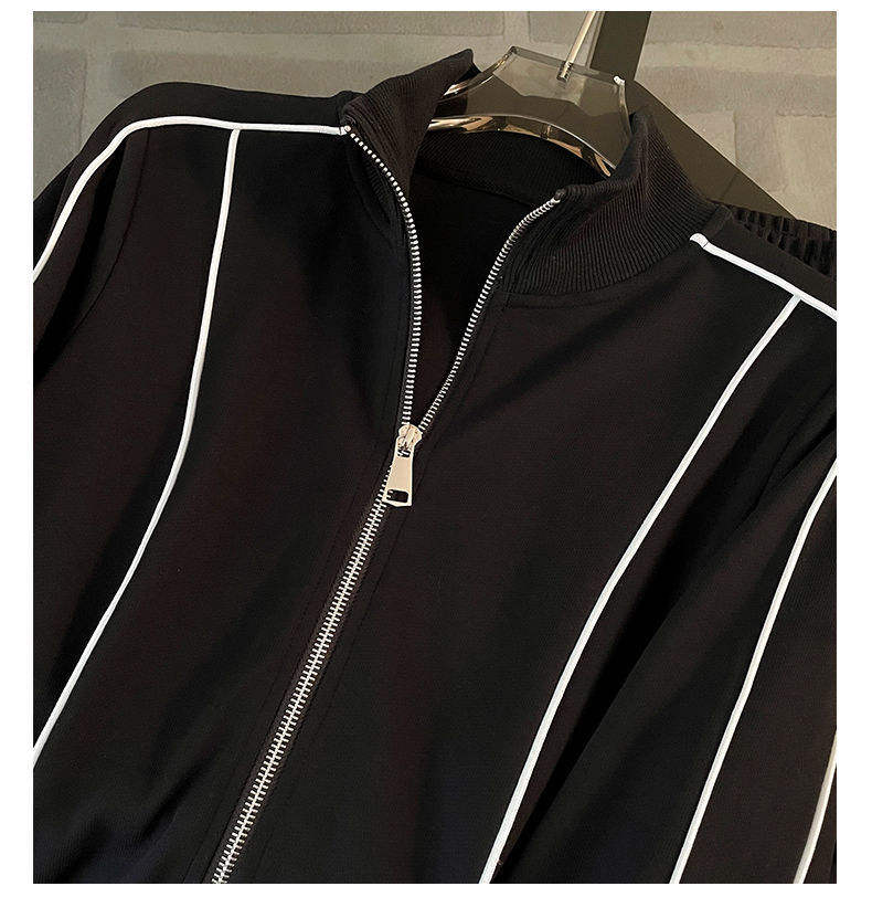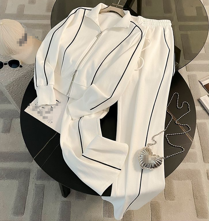 M-3XL Fashion Set Autumn Zipper Cardigan Collar Coat Loose Wide Leg Pants Two-piece Set Leisure Suit