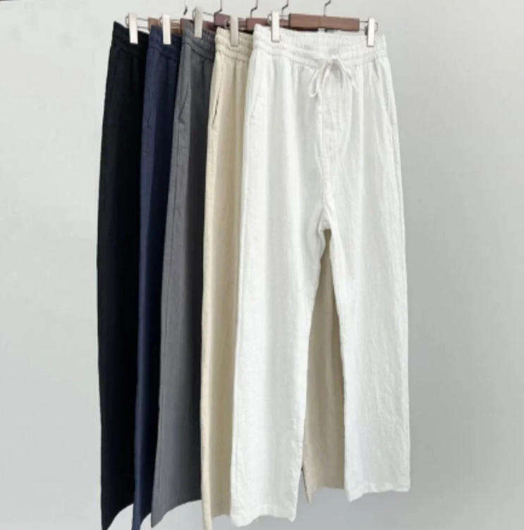 Pantaloni Larghi in Lino a Gamba Dritta M-4XL, Pantaloni Estivi Sottili in Cotone e Lino, Pantaloni Casual da Uomo Traspiranti con Vita Elastica