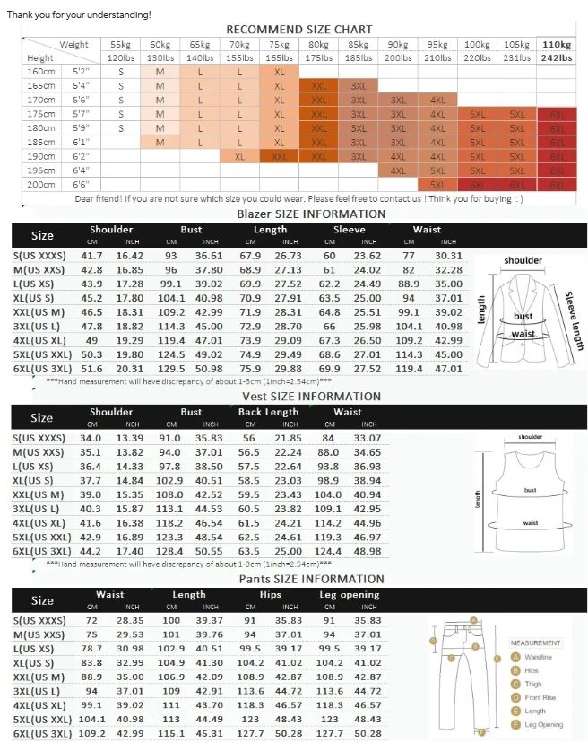 M-6XL Black Men Wedding Party Three Pieces Set Large Size Single Breasted Blazer Coat Pants Vest Slim Fit Tuxedo Suit Zipper
