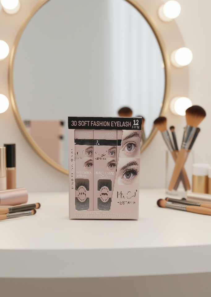 M&J 3D Soft Fashion Eyelash 12 Pairs Full Strip Lashes Natural Long C Curl Synthetic Hair Plastic Cotton Band