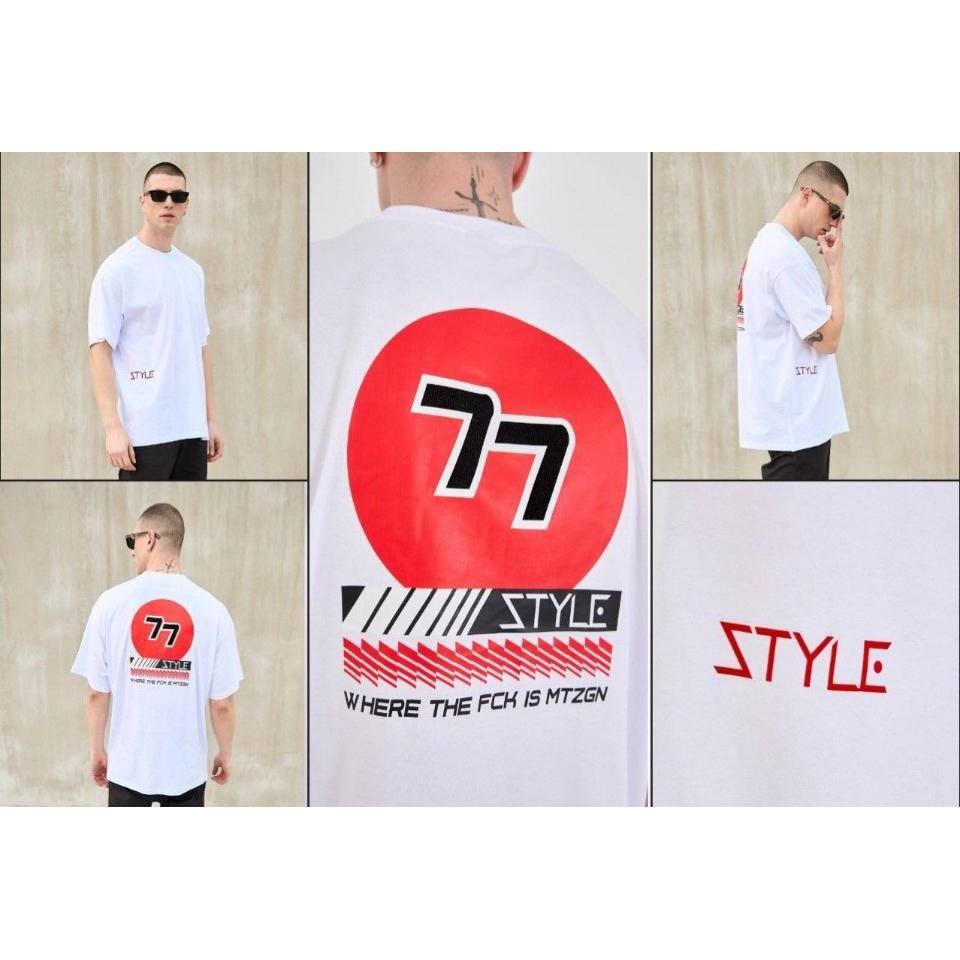 T-shirt Oversize con stampa girocollo Unisex-bianco