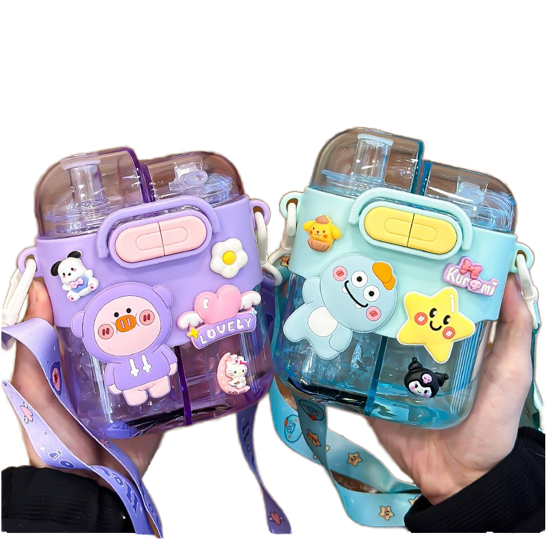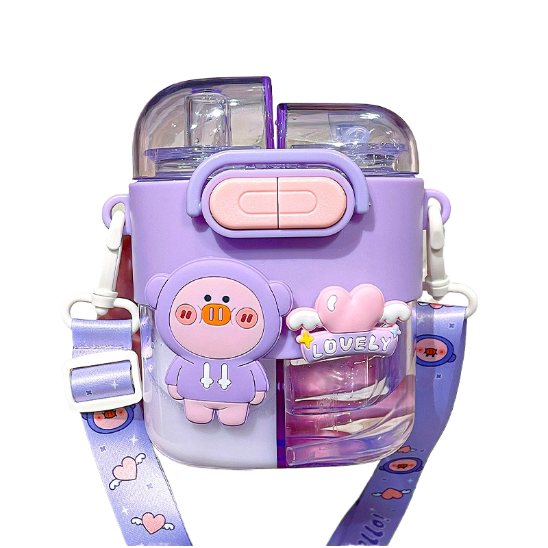 M nuovissima tendenza della moda portatile cartoni animati animali per bambini tazze da viaggio graziosa bottiglia d'acqua in plastica per bere paglia diretta per la palestra della scuola