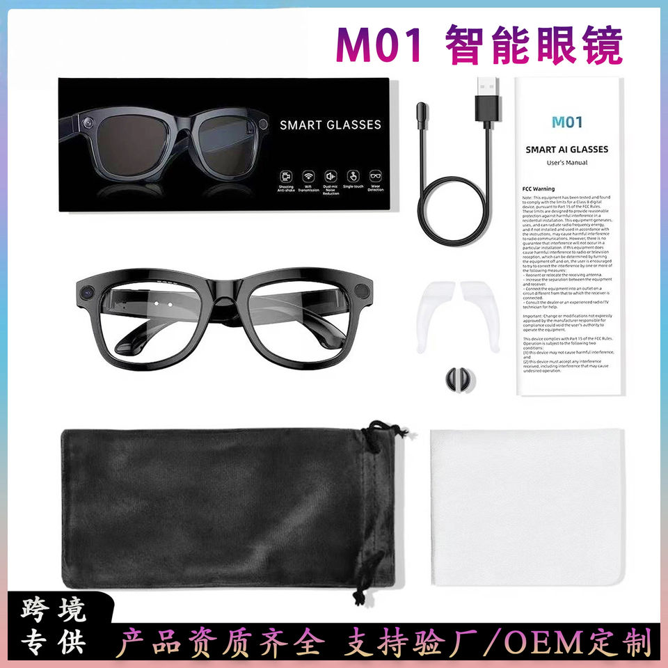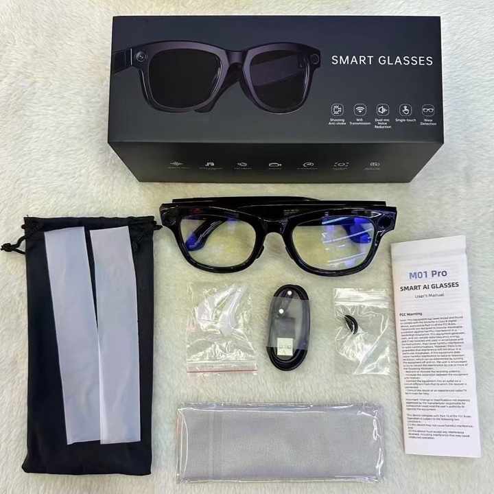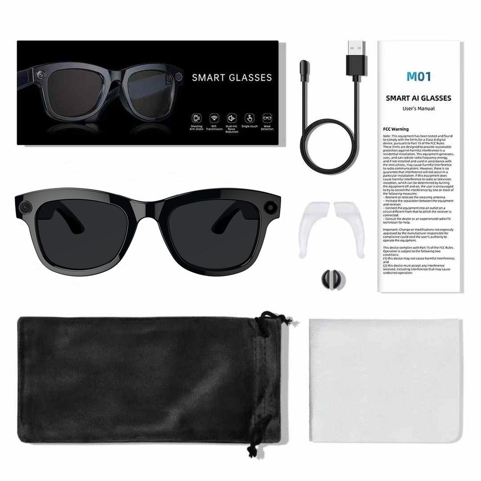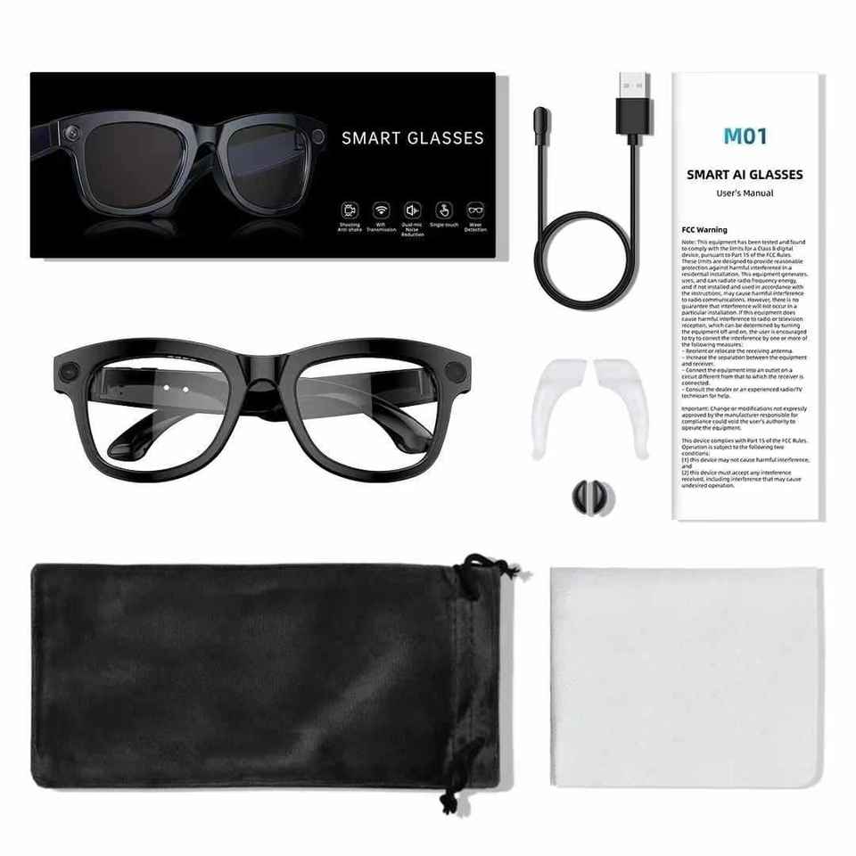 Occhiali Smart M01 con Fotocamera da 8 Megapixel, Traduzione Simultanea AI, Registrazione Video 1080P e Memoria da 32GB per Registrazioni
