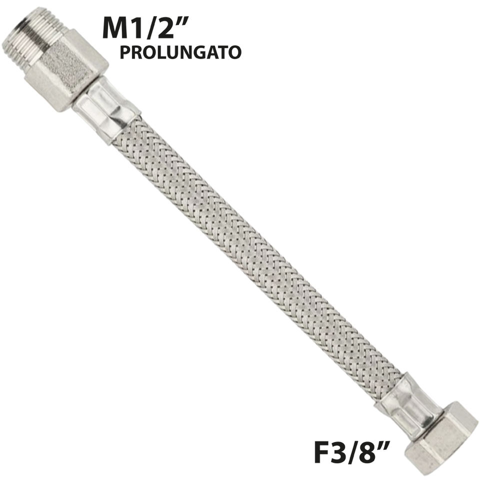 Tubo Flessibile per Doccia in Acciaio Inox DN10 da M1/2\" a F3/8\" 30cm con Materiale in Ottone e EPDM per Impianti Idraulici da Bagno