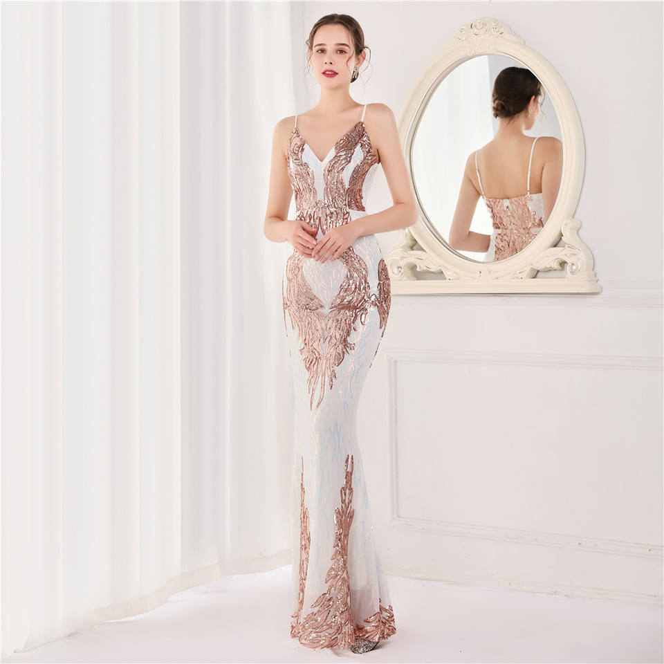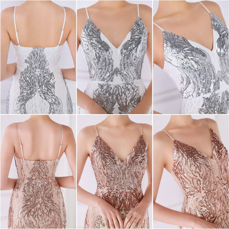 M18800# Elegant Mermaid Sequin Bridesmaid Dresses for Women Sleeveless V-Neck Prom Gowns Party 3D Wedding Evening Promotions