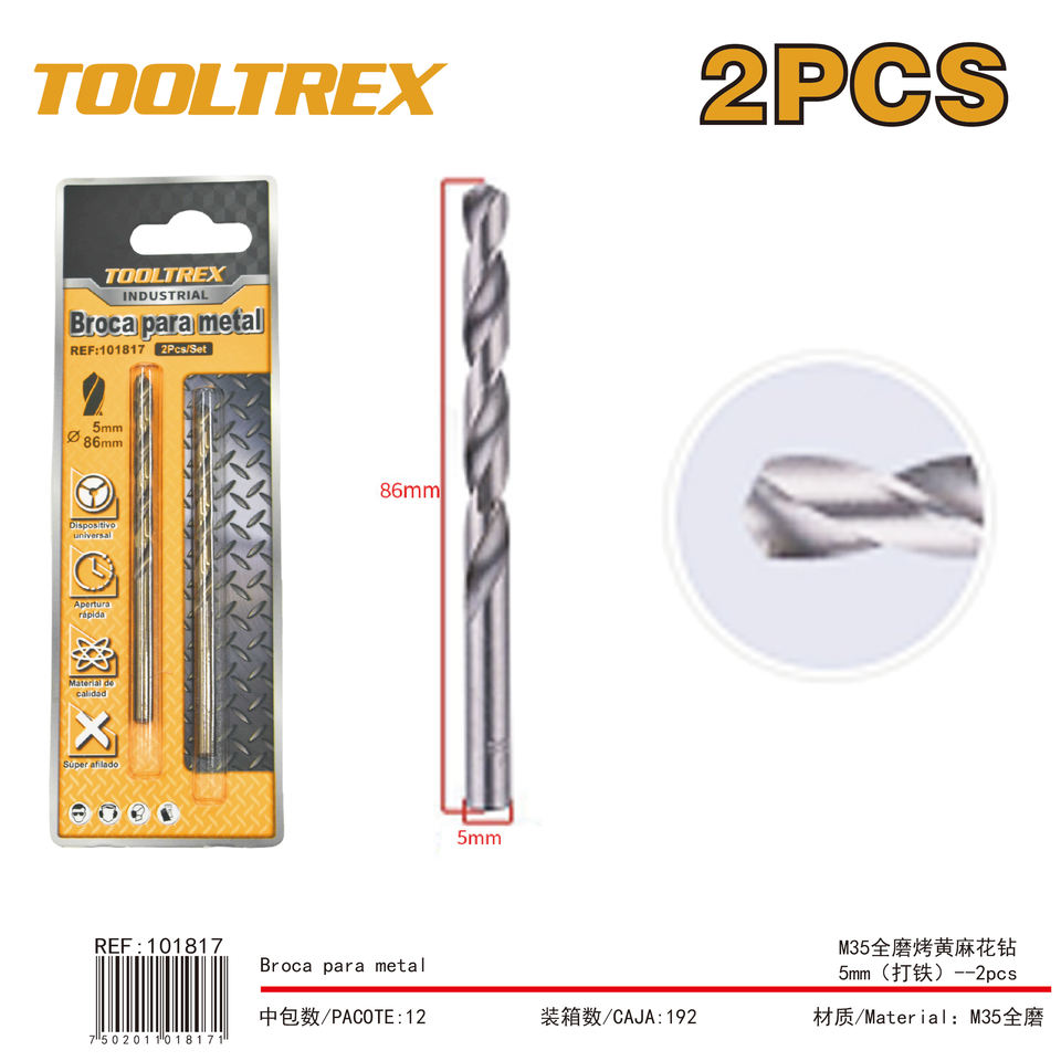 Punta da trapano per metallo Tooltrex, 5 mm, lunghezza 86 mm, materiale M35, per macchine perforatrici, set da 2 pezzi