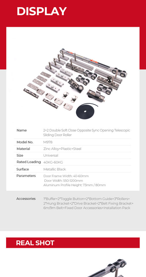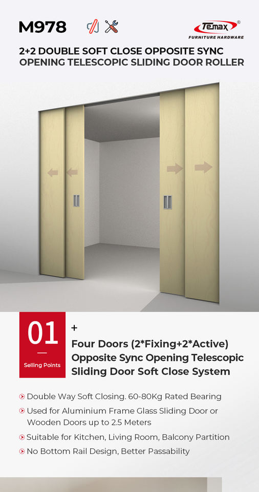 Sistema di Ammortizzazione per Porta Scorrevole Telescopica M978 2+2 con Telaio in Alluminio a Bordo Stretto e Apertura Inversa