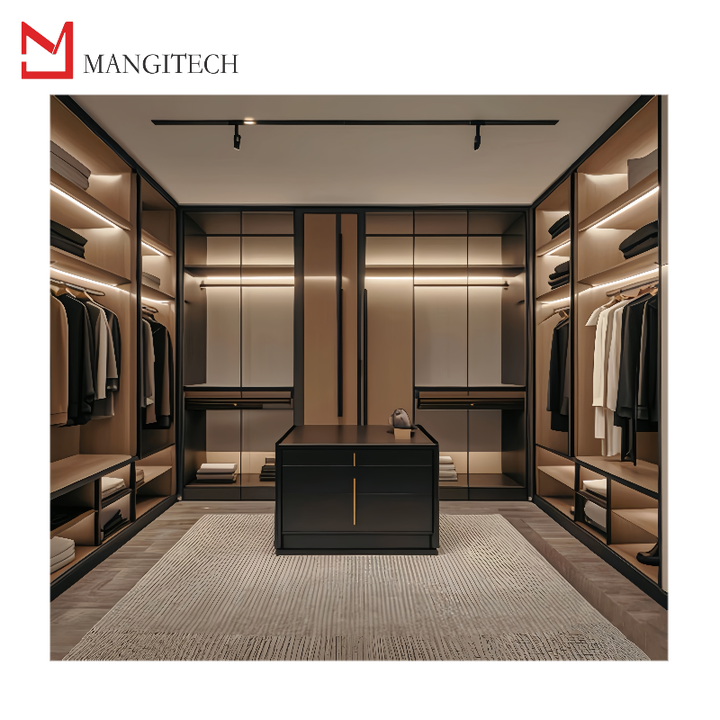 MANGITECH Modern Custom Bedroom Combination Cabinet Open Wardrobe with MDF Wooden Wood for Villas Closet Wardrobe Furniture