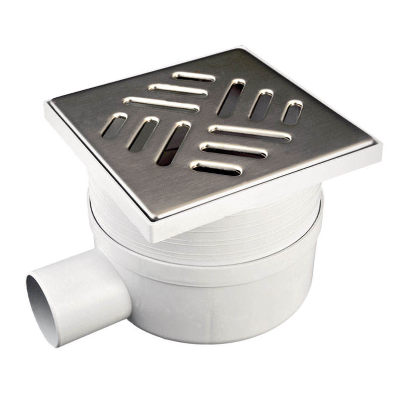 Coperchio per Tombino con Scarico Laterale Telescopico, Griglia in Acciaio Inox 15x15 cm - Scarico 50 mm