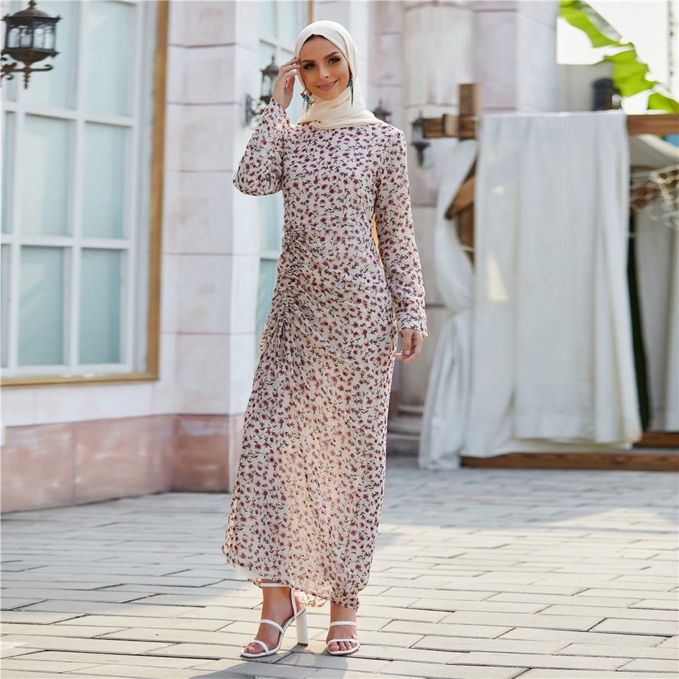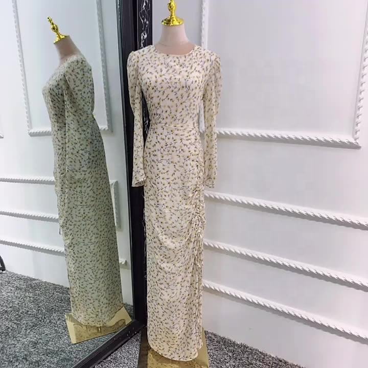 MANNI abito da Hijab increspato da donna Maxi Chiffon floreale musulmano Dubai turchia abiti islamici arabi