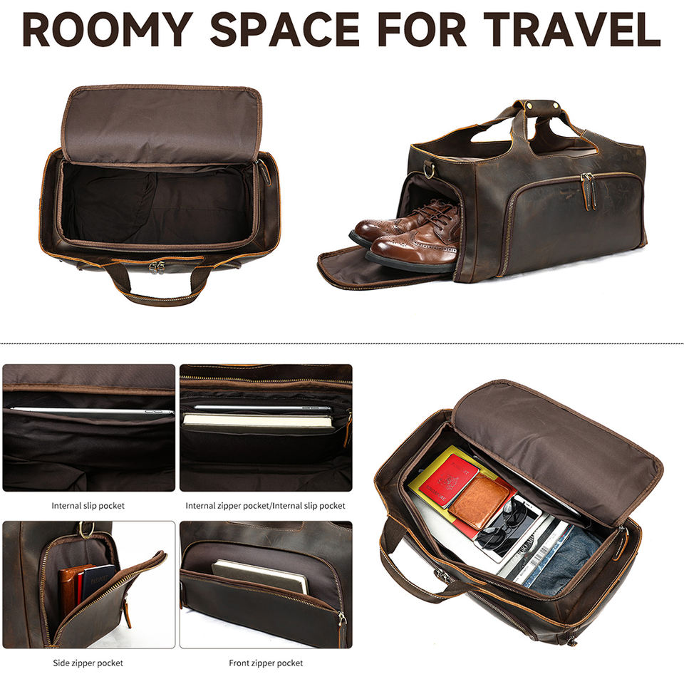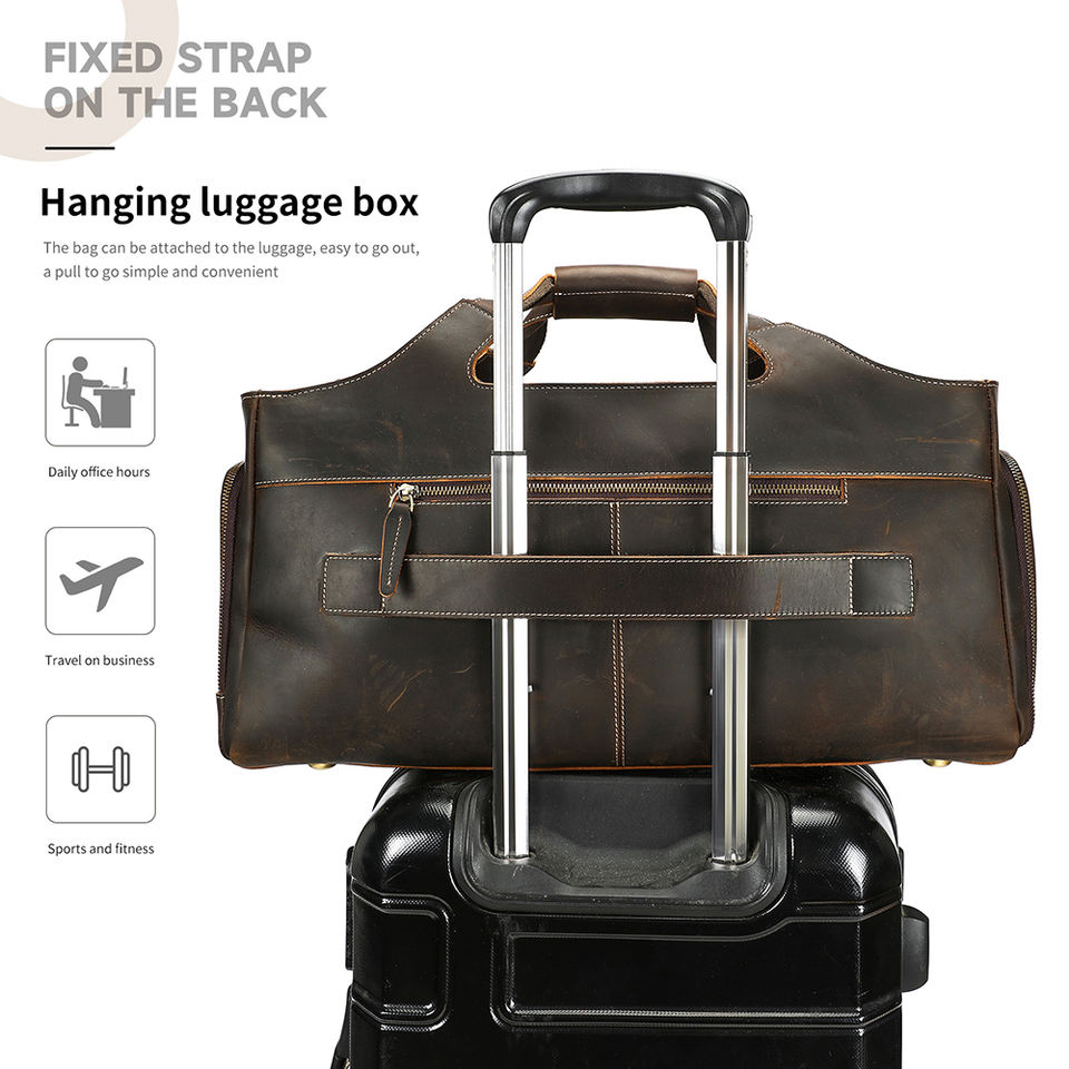 MARRANT Men Crazy Horse Genuine Leather Weekend Overnight Duffle Bag Large Capacity Hand Luggage Bags Leather Travel Bag Men