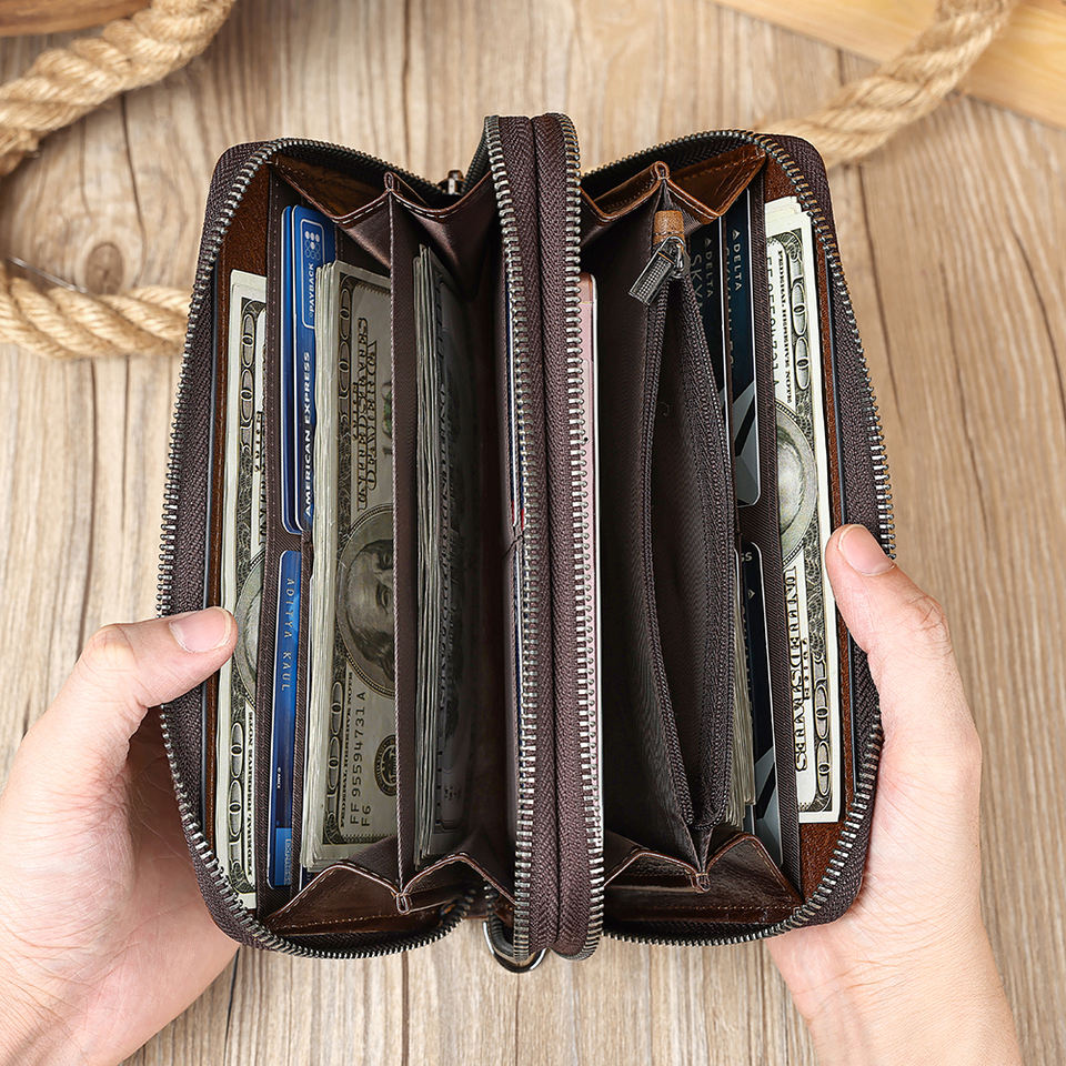 MARRANT Men Leather Clutch Bag Large Capacity Cell Phone Pouch Money Bag Leather Purse for Men's Genuine Leather Wallet