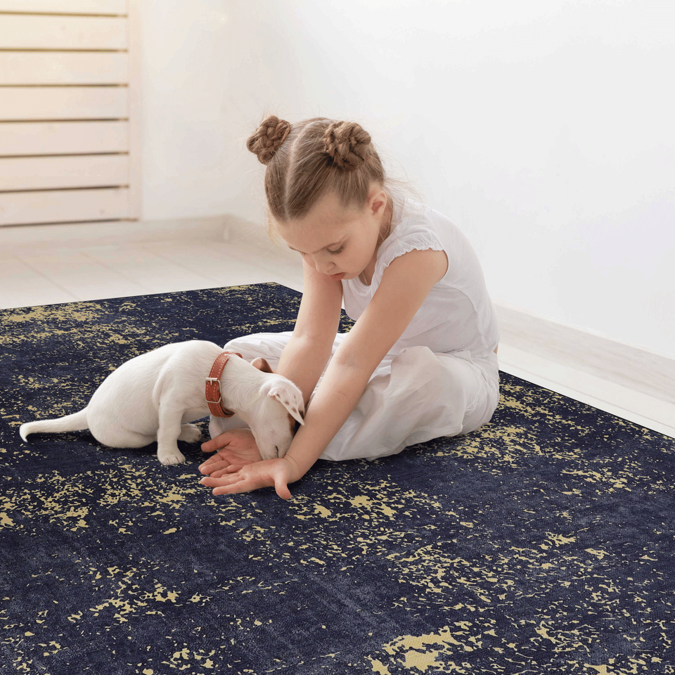 Tappeto Runner Lavabile Nero MAVAL 76x25 cm con Dettagli Oro Colore Nero+Oro