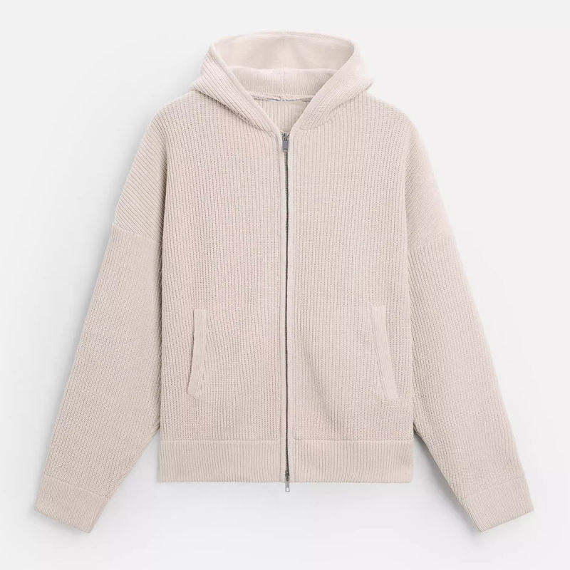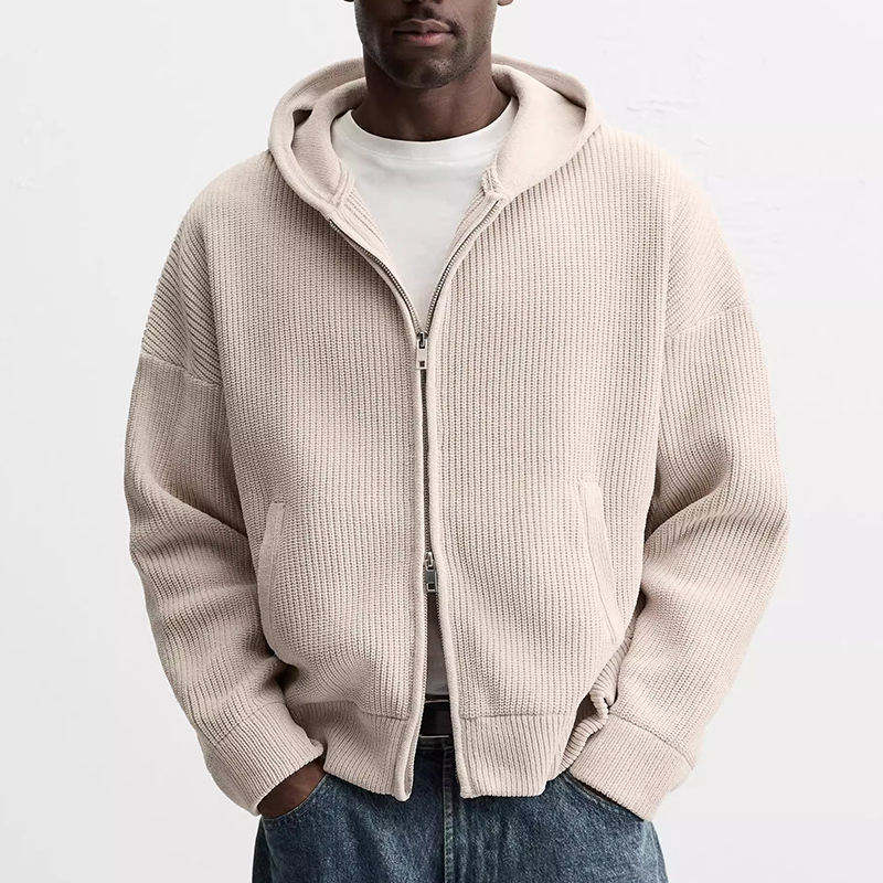 MC02 Cardigan Pullover da Uomo in Maglia con Cappuccio, Maniche Lunghe e Spalle Scivolate, Design Semplice a Tinta Unita con Chiusura a Zip