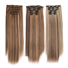 ME177L90_56 Set of European Remy Hair Extensions 1B Color Long Attached Hair with Clip Ins 6 Bridge Feet Ticking Human Hair