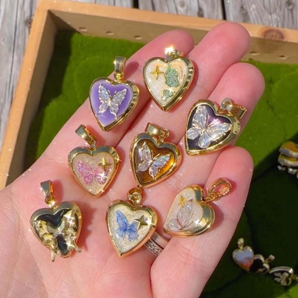 MECYLIFE Trendy Geometric 18K Gold Plated Charm Butterfly Pendant DIY Oil Painting Colorful Series Women's Unisex Necklace