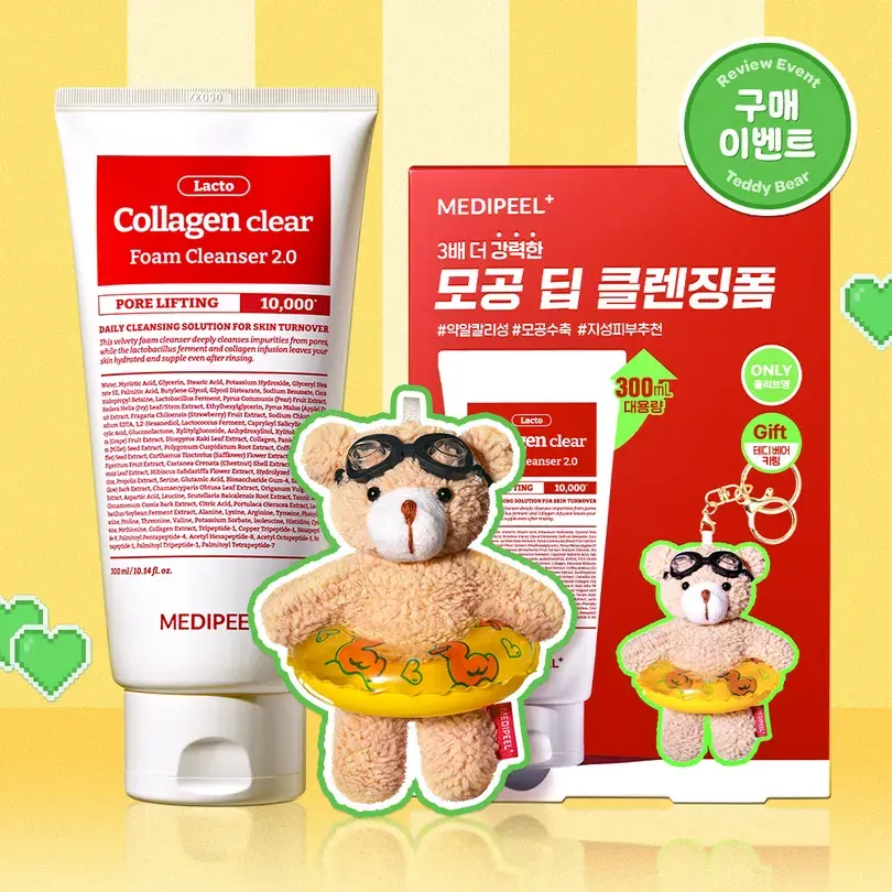 MEDI-PEEL Red Lacto Collagen Clear Foam 2.0 300ml Set with Teddy Bear Keyring Facial Cleanser