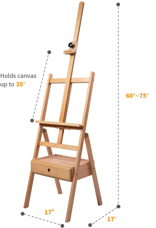Cavalletto regolabile con telaio a H MEEDEN Studio con cassetto portaoggetti in legno massello di faggio per artisti