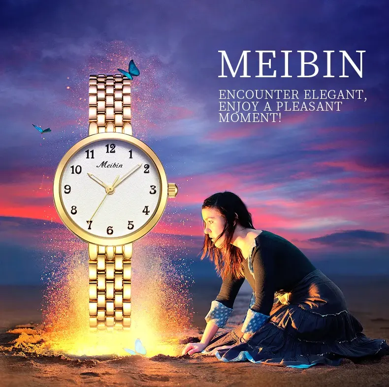 MEIBIN 1051 di moda di lusso giappone movimento al quarzo orologio da polso da donna bracciale a buon mercato