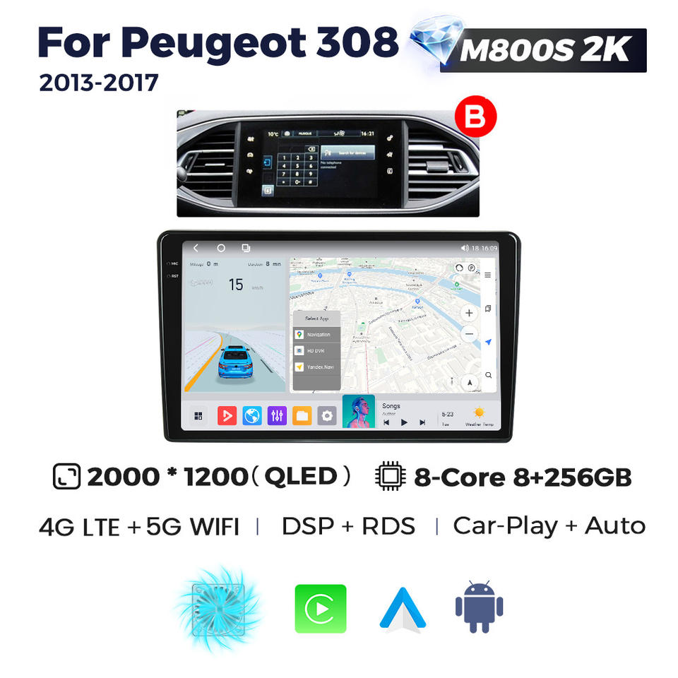 MEKEDE MS controllo vocale WIFI GPS BT auto-play automatico navigazione gps per Peugeot 308 2013 - 2017 ventola di raffreddamento