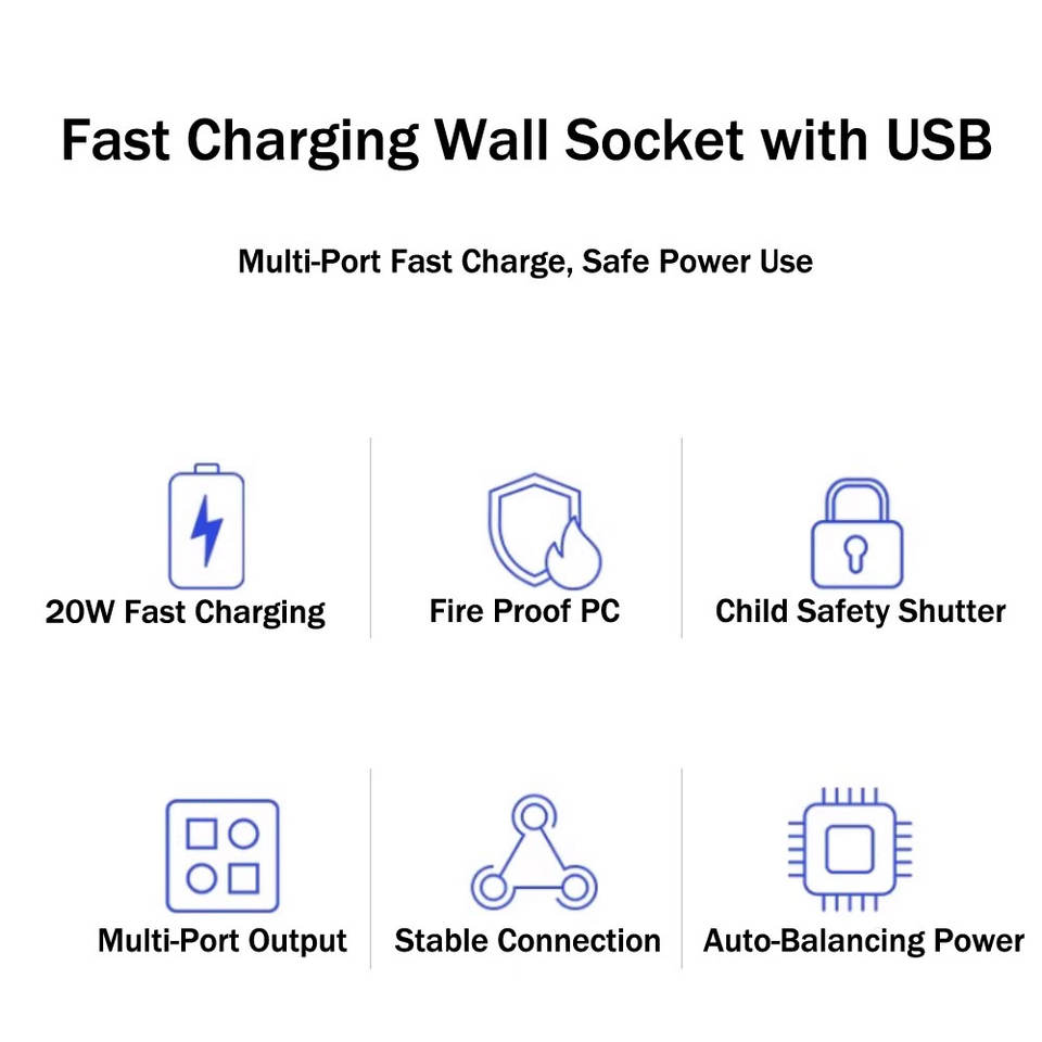Presa a Muro Universale MGA Tipo A+C 16A 20W 250V per iPhone