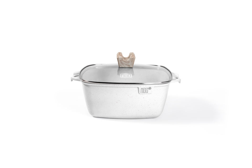 MGC Set 10 pz pentole quadrate grandi, riv. antiaderente marmo; coperchi vetro temperato; manopole bachelite-legno
