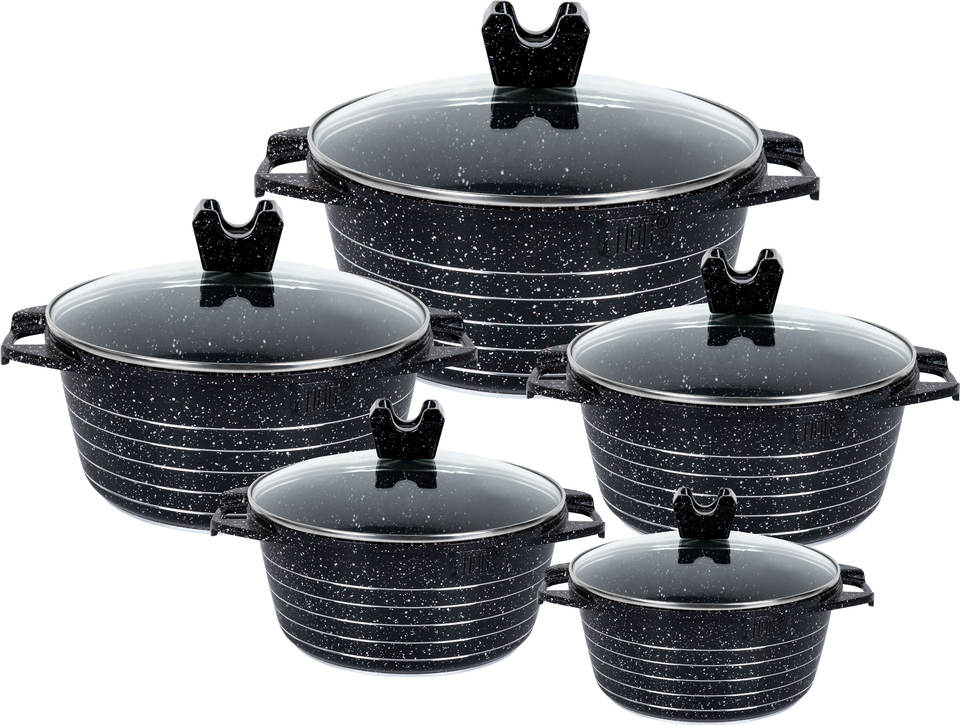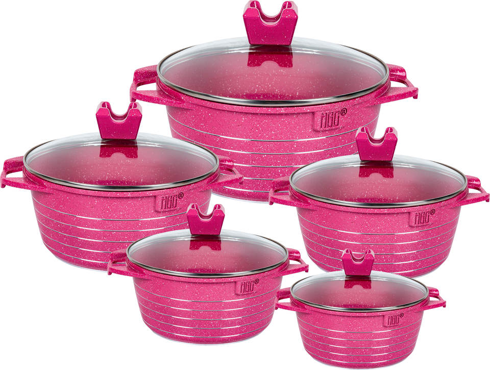 Set di Pentole MGC di Alta Qualità, 10 Pezzi con Rivestimento Ceramico Antiaderente e Linee Lucide sul Corpo