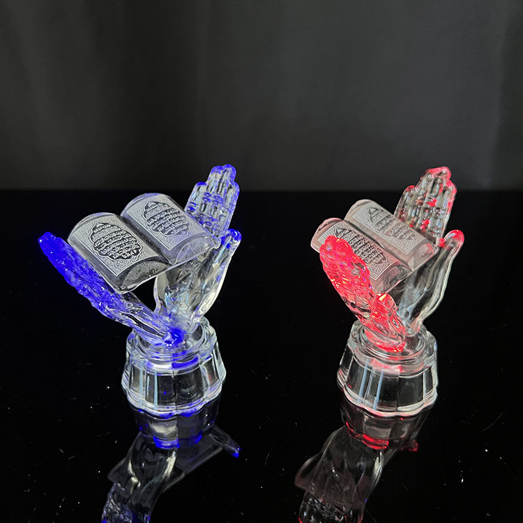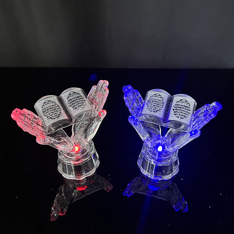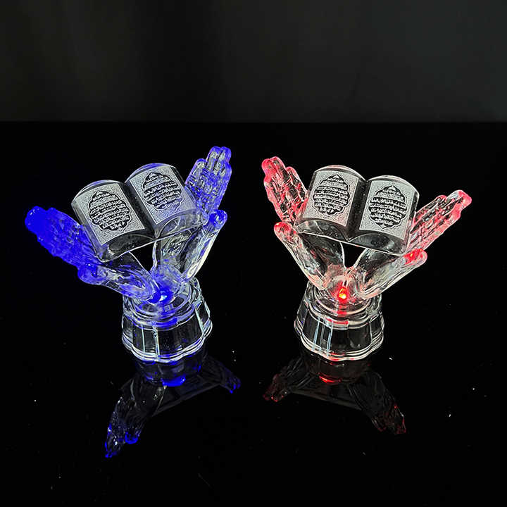 MH-L0305 Crystal Glass Holy Bible Islamic Gift Crystal with Multi Led Base Holy Crystal Decoration Bible Baby Baptism Gifts