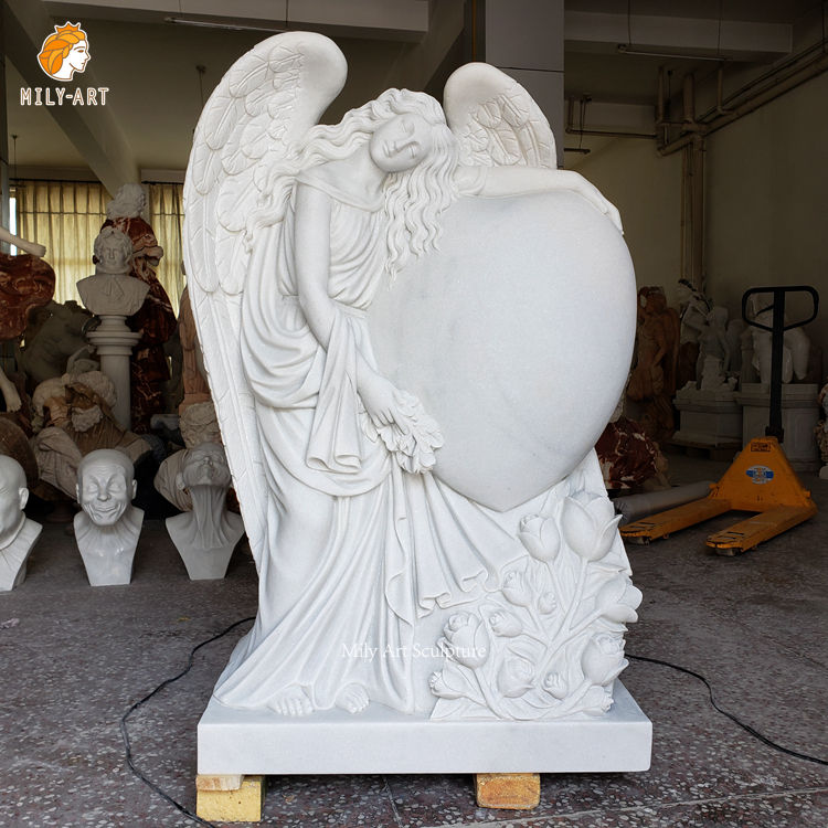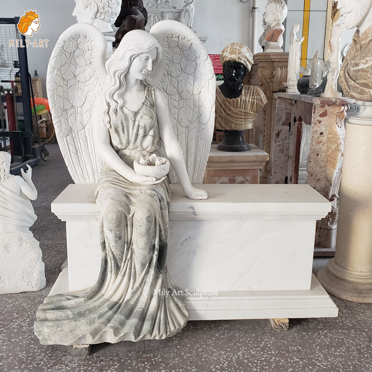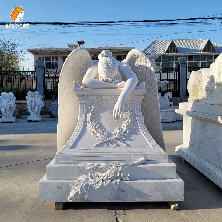 MILY marmo bianco europeo caduto piangendo angelo piangente statua lapide monumenti per il cimitero