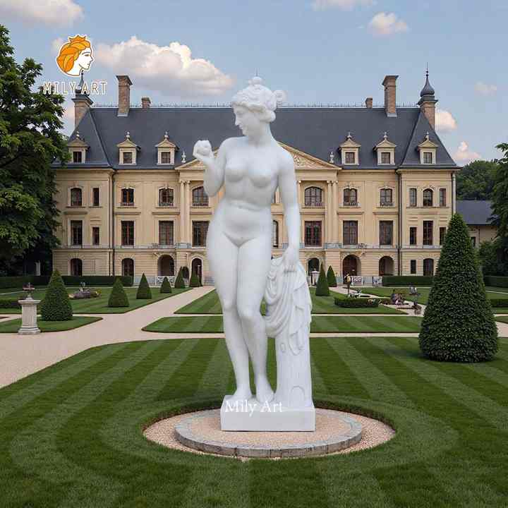 MILY statua di venere in marmo a grandezza naturale tiene la mela intagliata Design classico per il giardino esterno