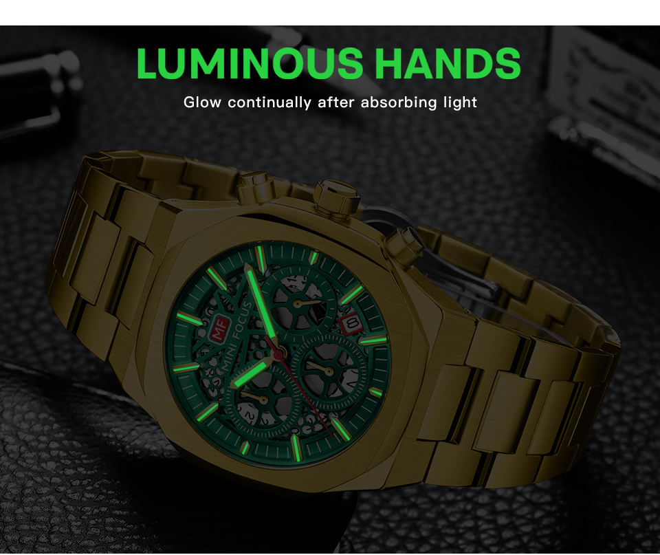 MINI FOCUS Orologio Cronografo al Quarzo da Uomo in Acciaio Inossidabile, Orologio da Polso Sportivo Business con Lancette Luminose Automatico 0411