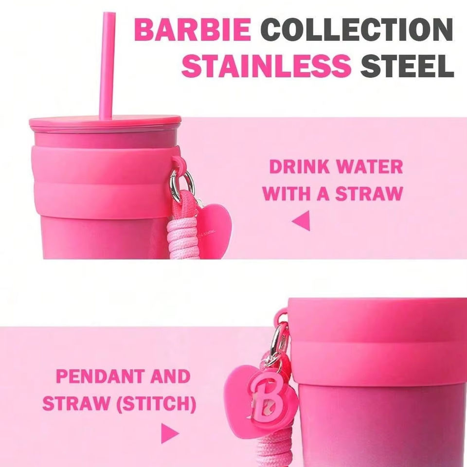 MINISO alla moda e portatile per la serie Barbie 800mL in acciaio inossidabile tazza di paglia elegante bottiglia d'acqua con Design carino