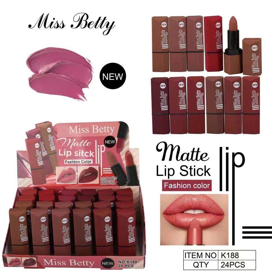 MISS BETTY Nuovo Set di 24 Rossetti in Tubetto, 6 Colori, Vernice Gommata Opaca, Lunga Durata e Impermeabile