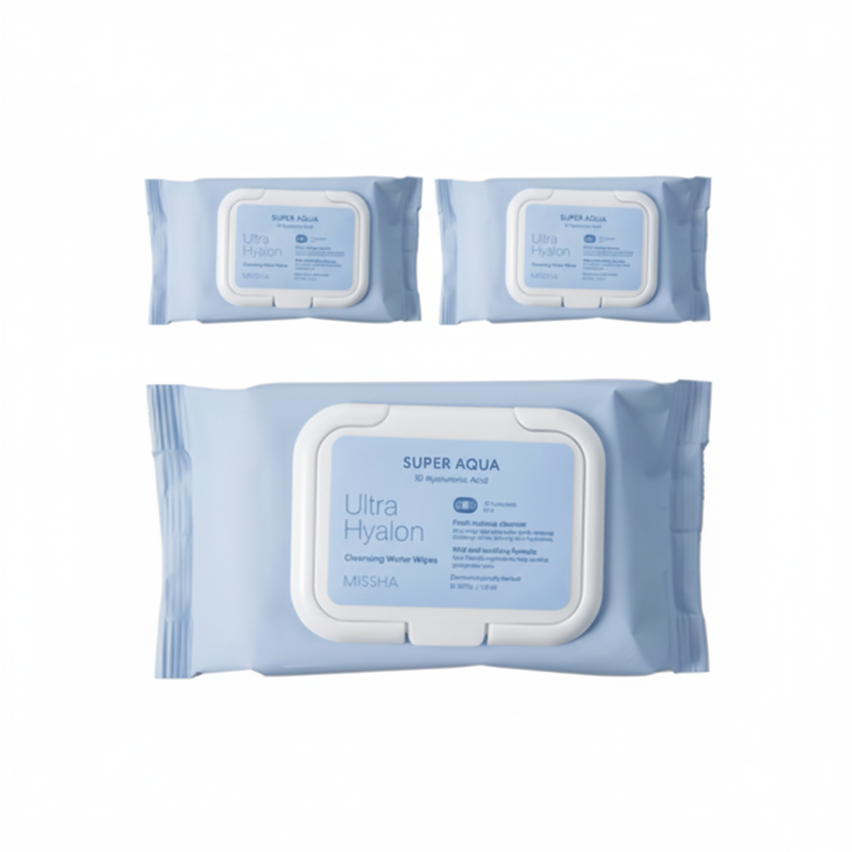 MISSHA Super Aqua Ultra Hyaron Cleansing for Water 30-Tits Cap Type Wipes 3 Packs of 3 Each