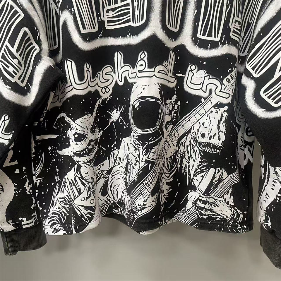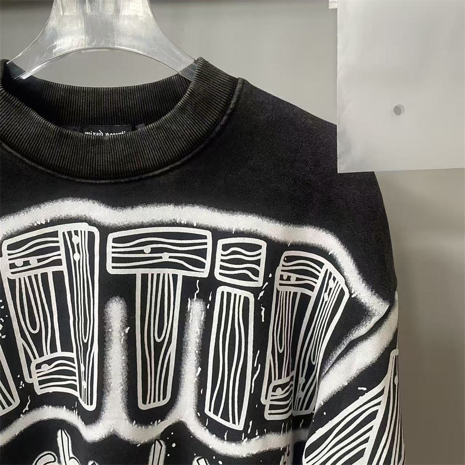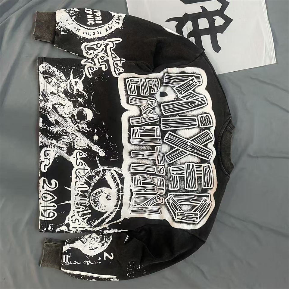Misto emozione felpa con girocollo nera dipinta a mano t-shirt a maniche lunghe con stampa completa