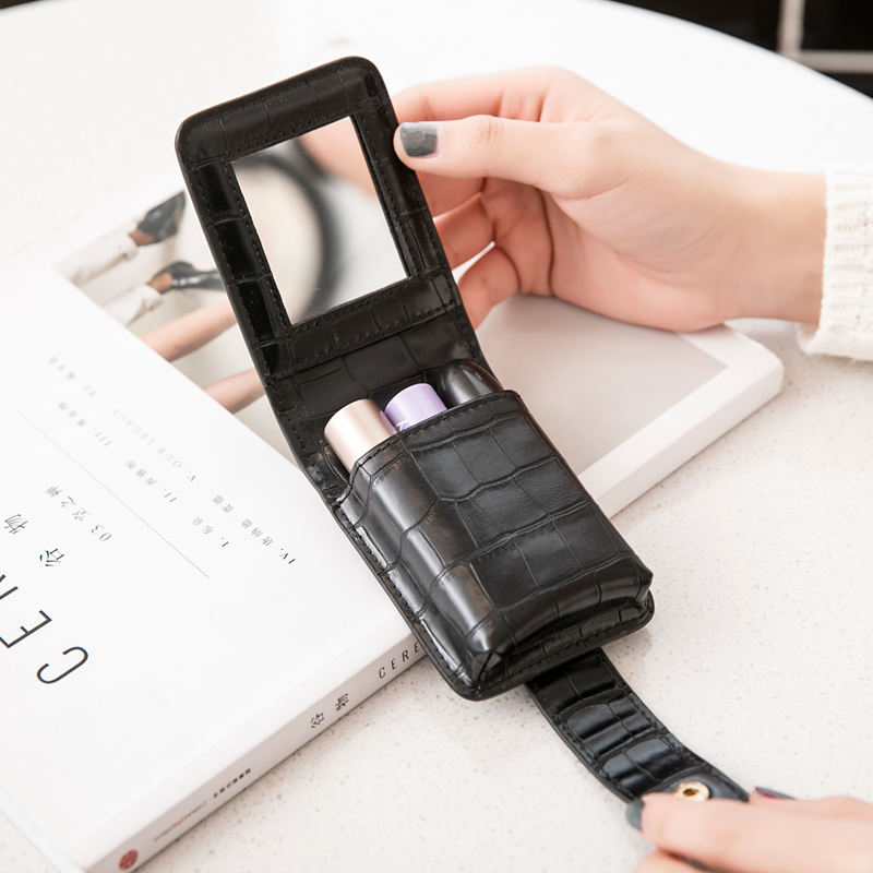 MIYIN fashion small cosmetic bag Portable Mini lipstick pouch lipstick holder with mirror makeup bag Storage lipstick bag