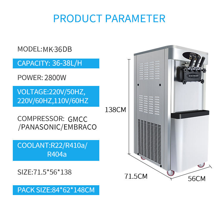 MK-36DB Miken Factory Price Commercial Ice Cream Machine with CE Certificate/floor Stand 2+1 Mix Flover