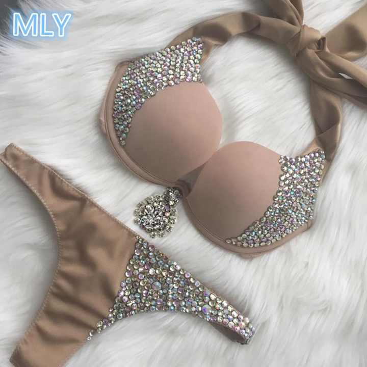 MLY Push up Jewelry Womens Swimwear Models Nude Rhinestone Bikini Plus Size Swimwear